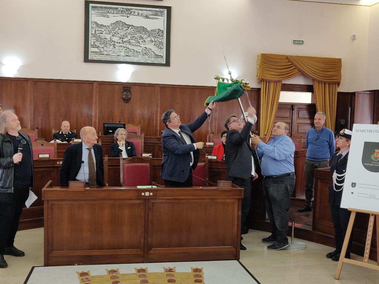 Un evento importante quello accaduto stamattina a Nocera Inferiore, presso l’aula consiliare del Palazzo di Città, sono stati presentati dal Sindaco Manlio Torquato e dal Presidente del Consiglio Comunale Fausto De Nicola, il nuovo Gonfalone del Comune e la nuova grafica dei loghi per il materiale pubblicitario dell’Ente.